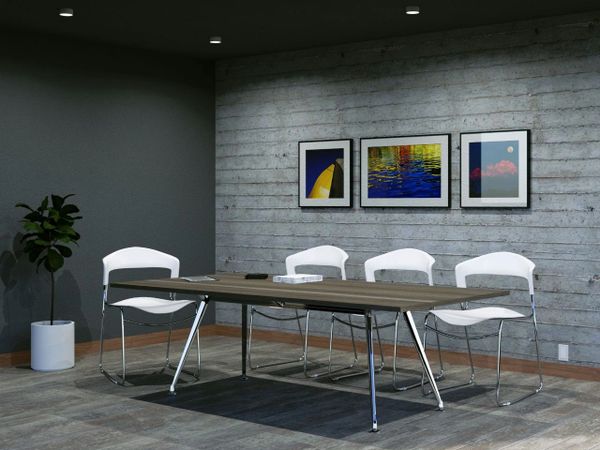 Mesa de juntas o de consejo River, cubierta rectangular y base metálica en “V” invertida. Variedad de colores (consultar disponibilidad).